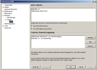 Select ASIO, under 'Driver' you should see 'ASIO4ALL v2' listed. Select 'Add New' and assign the output channels exactly as listed in the pic. Select 'OK', then 'OK' again. Reopen Preferences and click on 'Output', from the drop down menu select your newly created channel mapping. That should be it!