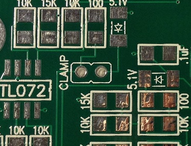 On the board is a single two pin header labelled 'CLAMP', this enables or disables clamping on AUX CH6 RCA connector. By default, this is disabled. When enabled, the output of the Auxilliary channel 6 will be limited to 0V to +5V.