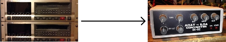 The ADAT to ILDA Converter can be connected directly to the ADAT Optical out port on an ADAT. The converter supports 44.1KHz and 48KHz sample rate at up to 24-bit resolution.
