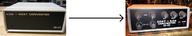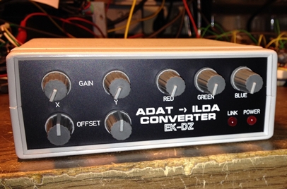 The ILDA to ADAT Converter can be directly connected to the ADAT to ILDA Converter. The only real benefit of this is complete electrical isolation since the show material is being transmitted optically. Optical cables of up to 25' have been successfully tested. No configuration is required, plug and play!