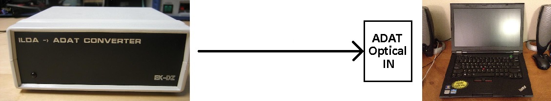 Here we will discuss recording laser shows with the ILDA to ADAT Converter. If you plan to record a laser show to a PC to create a multichannel wave file, aside from needing the ILDA to ADAT Converter you'll also need an adapter that supports ADAT Optical. There are several devices that support ADAT Optical ranging from PCI, PCIe and USB devices. For ease of use and portability we recommend the MiniDSP USBStreamer.