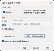 Select the MiniDSP ASIO Driver. 48K sample rate is more than adequate for laser shows however, if you require a higher sample rate, the Wave-USB supports up to 96K and the Wave-USB Pro supports 192K.