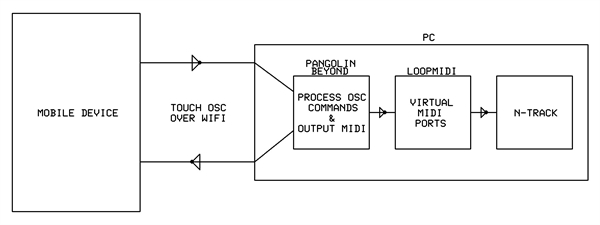 You will need TouchOSC for your mobile device, a wifi connected host PC with TouchOSC, LoopMidi and Pangolin's Beyond.