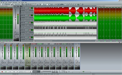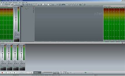 N-Track should now appear similar to the pic on the right. You will notice that there are now 8 VU meters on the left and 8 VU meters on the right. The VU meters on the left indicate input and the VU meters on the right indicate output.