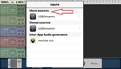 Next, you will need to assign the USBStreamer input channels to the recording tracks. Tap the word 'FX' on each track, this will bring up a zoomed image where you can arm the track, change the color, add FX or assign an input. Select the '>>>In' icon. From here select the Mono channels of the USBStreamer.